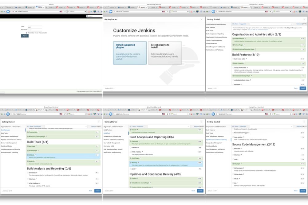 浏览器访问服务URL,按安装日志输入用户名:user/pswd(启动时生成的随机密码,见上图),可以开始配置使用Jenkins了。