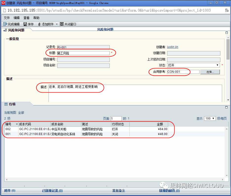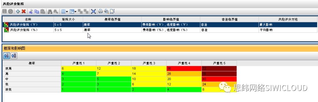 ORACLE风险管理模块可以指导风险管理人员快速建立风险清单,定义风险评分条件、输入定性风险评估标准,并将风险与项目作业连结,从而用于指导定量分析的评估。