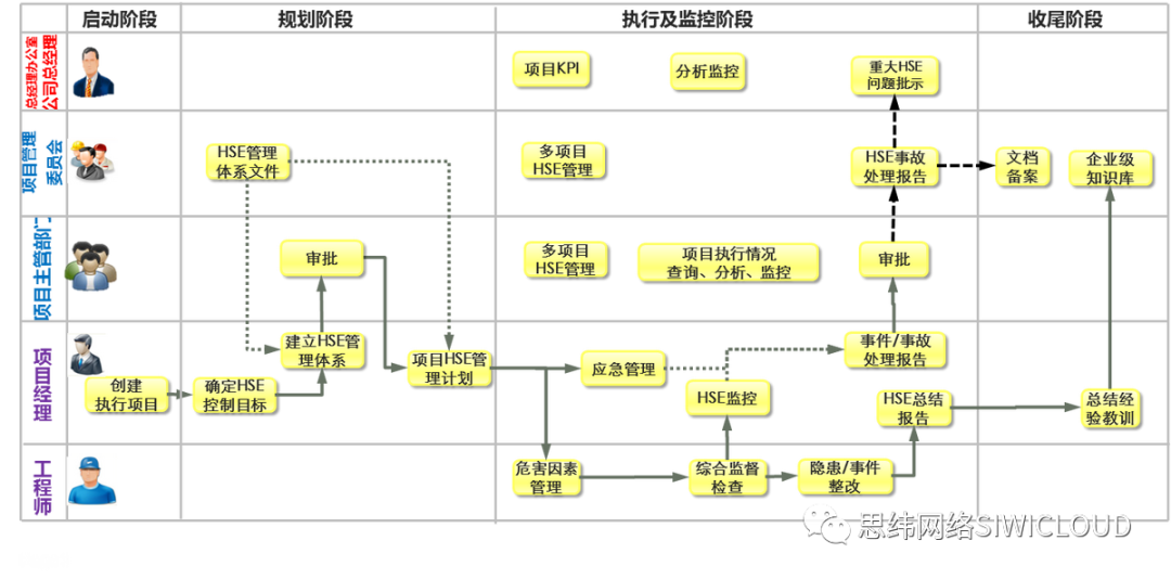 HSE管理人员进行从项目立项至验收阶段的全过程危险预防与管理措施的审查工作,确保工程项目本质安全。通过强化施工现场的HSE管理,及时消除各种隐患,为施工现场的人员人身安全及健康提供保障。