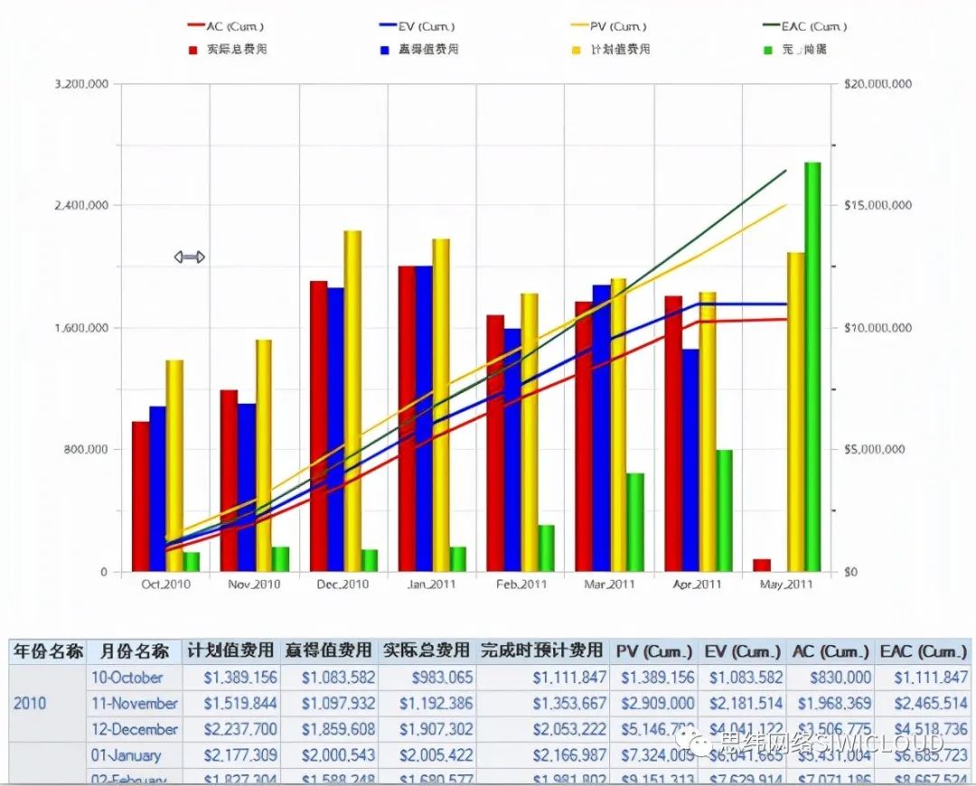 赢得值(Earned Value)分析法是一种能全面衡量工程进度、费用状况的整体方法,其基本要素是用货币量代替工程量来测量工程的进度,它不以投入资金的多少来反映工程的进展,而是以资金已经转化为工程成果的量来衡量,是一种完整和有效的工程项目监控指标和方法。