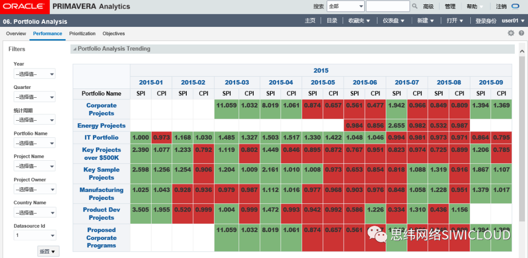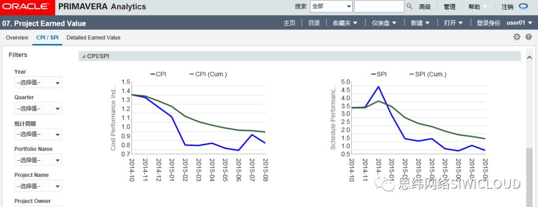 在ORACLE中,可以通过多种执行指数来反映项目的健康情况,最常用的就是通过赢得值(Earned Value)来分析。
