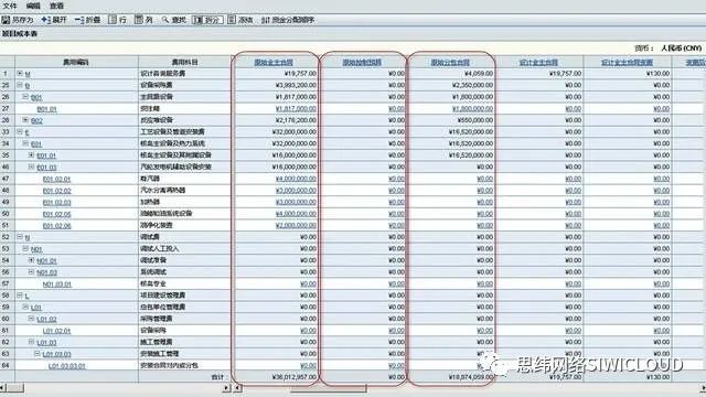 结合概预算管理及预算模板功能,系统能够基于CBS结构灵活的定义项目的实际预算,并在项目进行的过程中,基于预算、实际成本、承诺成本、动态成本进行对比分析。