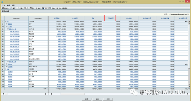 结合概预算管理功能,系统能够基于CBS结构灵活的定义项目的实际预算,并在项目进行的过程中,基于预算、实际成本、承诺成本、动态成本进行对比分析。