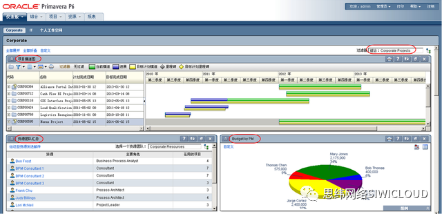 ORACLE具有全面的项目更新数据分析功能。进度跟踪反馈之后,ORACLE提供了专业的数据分析,包括现行计划与目标的对比分析、资源使用情况分析、工作量(费用)完成情况分析和挣值分析。具体内容如下: