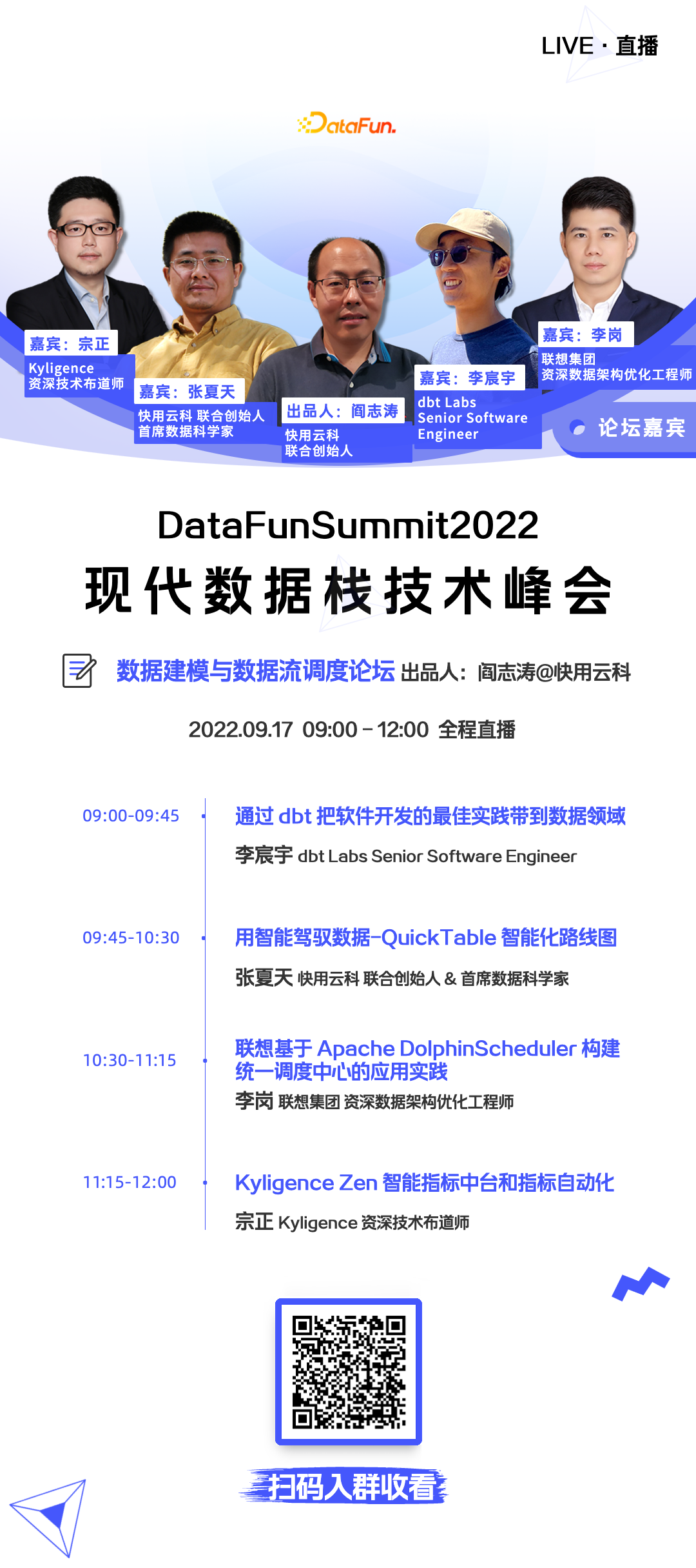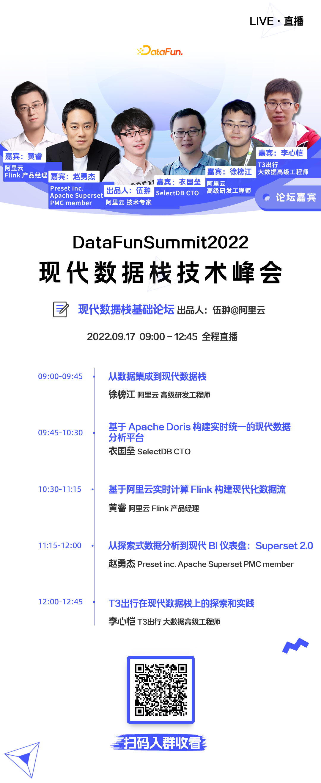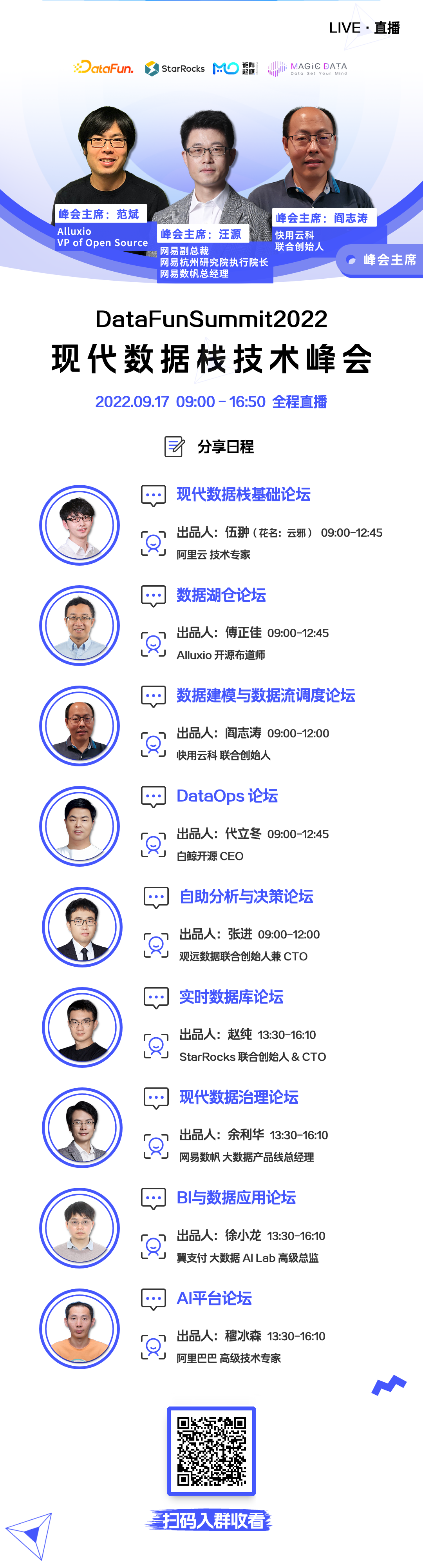 现代数据栈技术通常是指构成云原生数据平台的一组技术,对比传统的数据平台,使用它们可以大大的降低复杂度。2022年9月17日,由DataFun主办的DataFunSummit2022:现代数据栈技术峰会将如约而至。本次峰会3位主席与9位出品人精心策划而成,共包含了:现代数据栈基础、数据湖仓、数据建模与数据流调度、DataOps、自助分析与决策、实时数据库、现代数据治理、BI 与数据应用、AI 平台等9大主题论坛,邀请30余位来自行业一线的从事现代数据栈相关技术的专家,进行深度分享交流。本次峰会将全程直播,欢迎大家扫码入群收看。