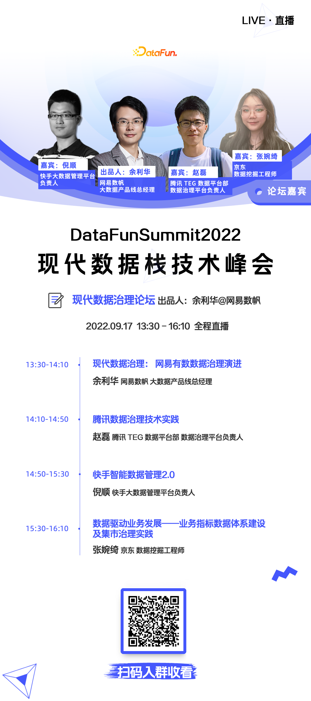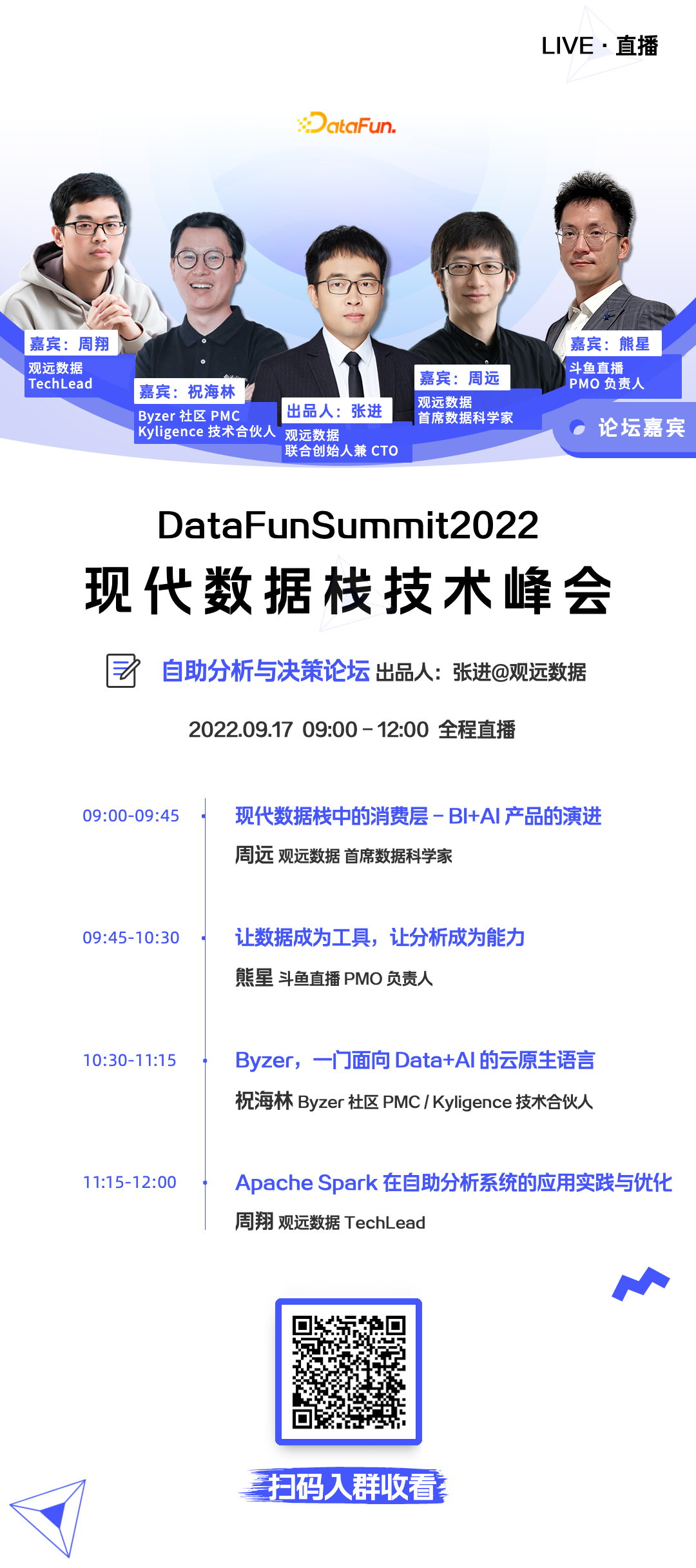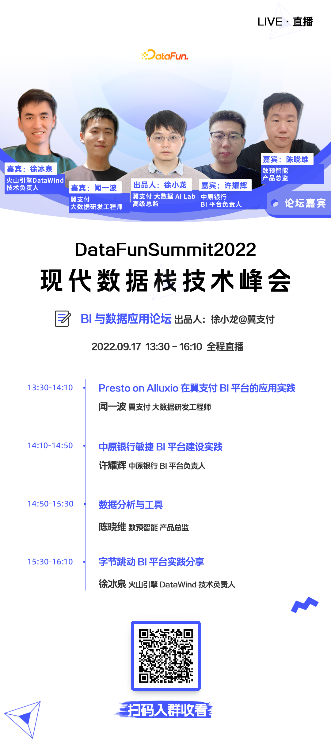现代数据栈技术通常是指构成云原生数据平台的一组技术,对比传统的数据平台,使用它们可以大大的降低复杂度。2022年9月17日,由DataFun主办的DataFunSummit2022:现代数据栈技术峰会将如约而至。本次峰会3位主席与9位出品人精心策划而成,共包含了:现代数据栈基础、数据湖仓、数据建模与数据流调度、DataOps、自助分析与决策、实时数据库、现代数据治理、BI 与数据应用、AI 平台等9大主题论坛,邀请30余位来自行业一线的从事现代数据栈相关技术的专家,进行深度分享交流。本次峰会将全程直播,欢迎大家扫码入群收看。