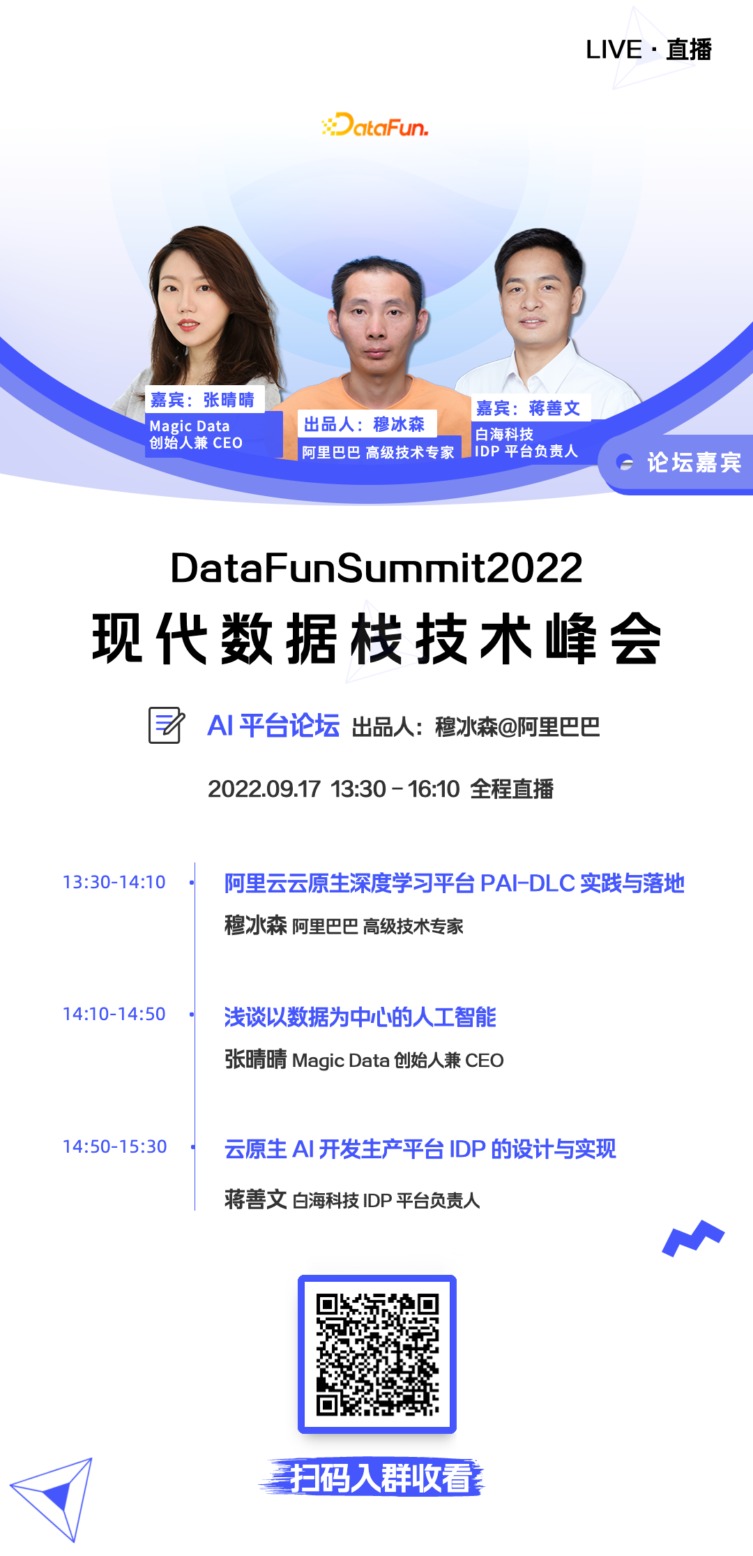 个人介绍:北邮硕士毕业,2021年加入阿里云机器学习平台PAI,负责机器学习平台工程架构和商业化相关的工作。加入阿里之前在微软、腾讯负责bing搜索和个性化推荐相关的工作。