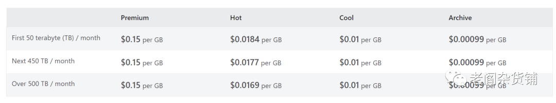 Azure Data Warehousing是微软Azure平台推出的云端数据仓库产品。Azure Data Warehousing同样支持servless和专属资源两种方式。对于Servless的按需收费,Azure的价格和Google BigQuery相同。也是处理每T数据花费5美元,在2022年12月底之前,每个月的第一个TB数据处理免费。同样存储是单独收费,价格划分比Google更细,如下:
