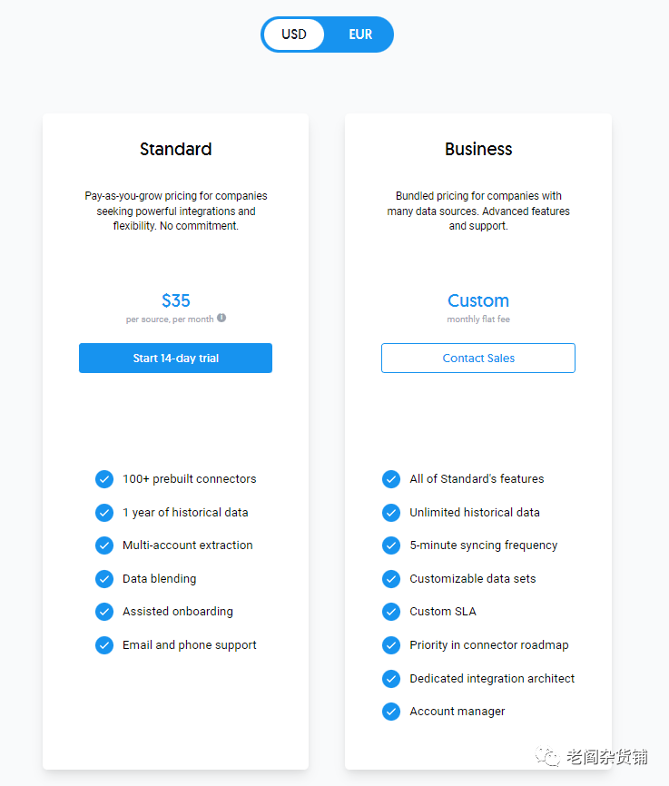 Dataddo标准版本35美金一个月,没有声明同步数据量的限制。对于有一定数据量,有比较在意价格的客户,可以尝试Dataddo.