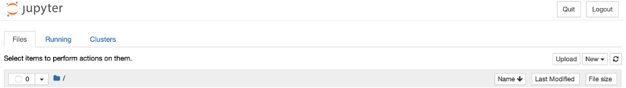 打开OS终端,输入jupyter notebook,即可打开Jupyter服务器,并在你的浏览器中打开一个新的窗口,即记事本仪表盘(Notebook dashboard),如下图所示: