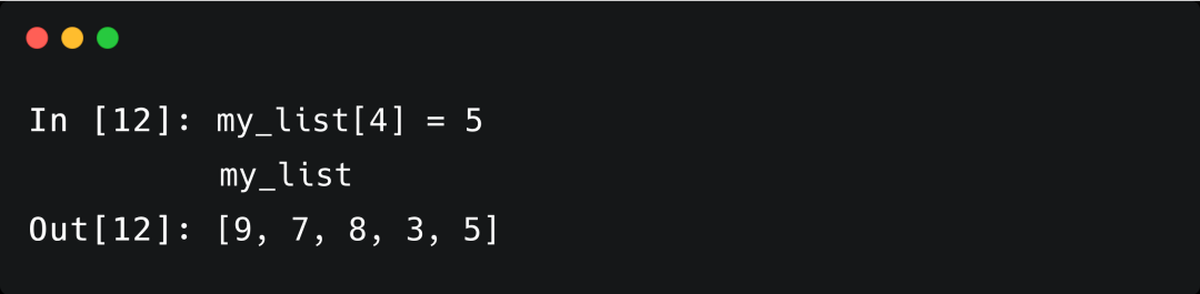 注意:列表中的每个元素均会分配一个数字,用以记录位置,我们称之为索引 (Indexes) ,索引值从0开始,依次往后计数。索引值从后往前的话,依次是-1,-2……同样的语法可以用来修改列表元素:
