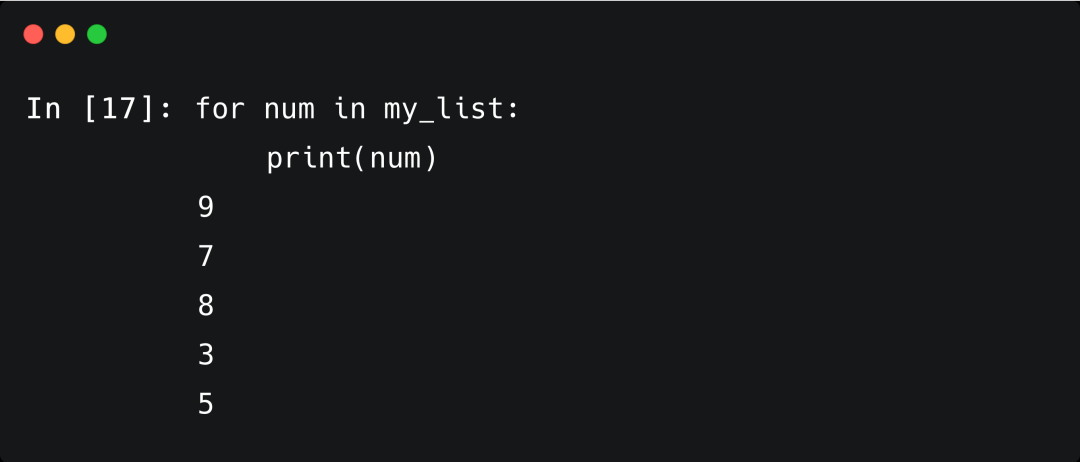 for num in my_list表示一个临时变量num被创建,它在每一次执行中包含列表中的一个元素值。