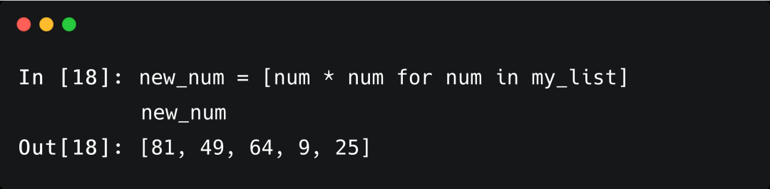 一个新的列表被创建,它含有原列表中所有元素的平方值。