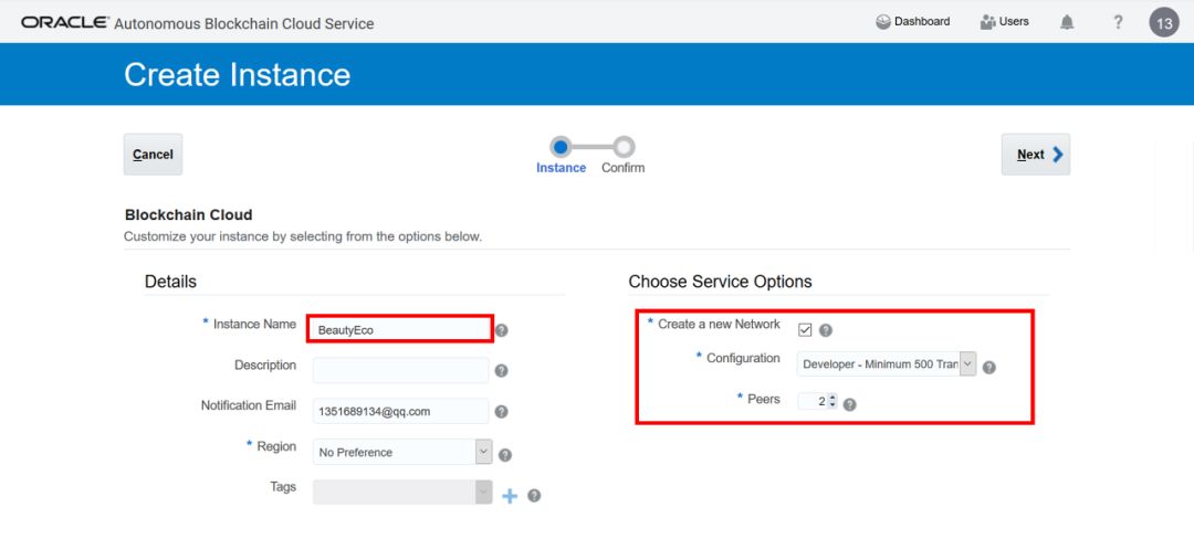 Choose Service Options:如果创建的是Network/Founder,勾选“Create a New Network”,如果创建的是参与方,去掉复选框勾选。
