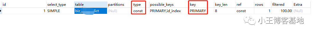B:const:使用唯一索引或者主键,返回记录一定是1行记录的等值where条件时,通常type是const。其他数据库也叫做唯一索引扫描