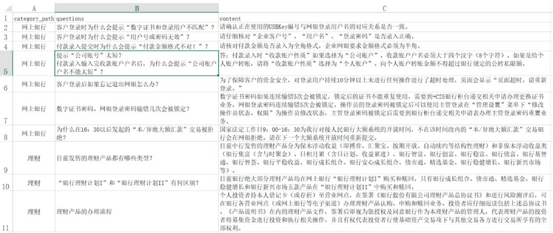 准备ODA需要的QnA资源文件(UTF-8的CSV格式),样本如下: