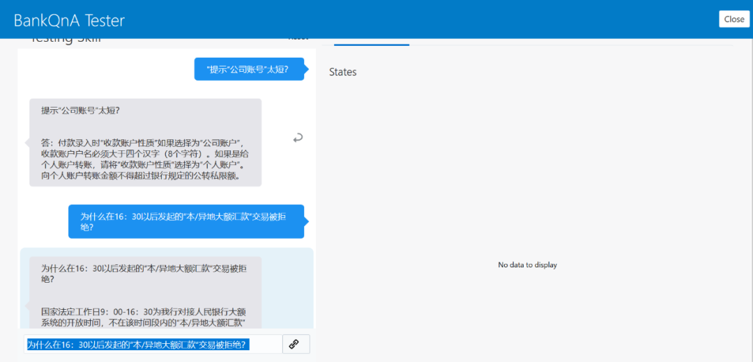 点击“Train”按钮,使用QnA Trainer进行Bot训练
