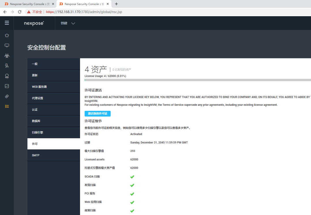跟一般的扫描工具不同,Nexpose自身的功能非常强大,可以更新其漏洞数据库,以保证最新的漏洞被扫描到。