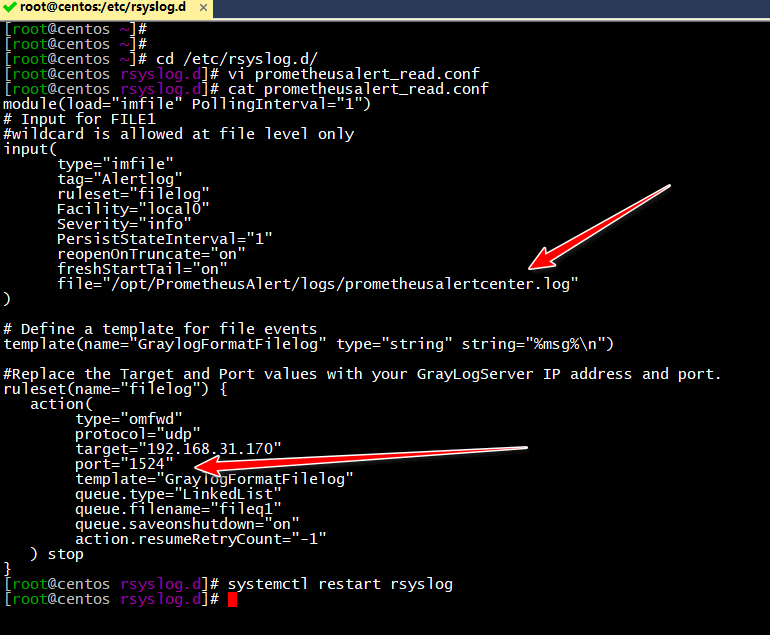 [root@centos rsyslog.d]# vi prometheusalert_read.conf