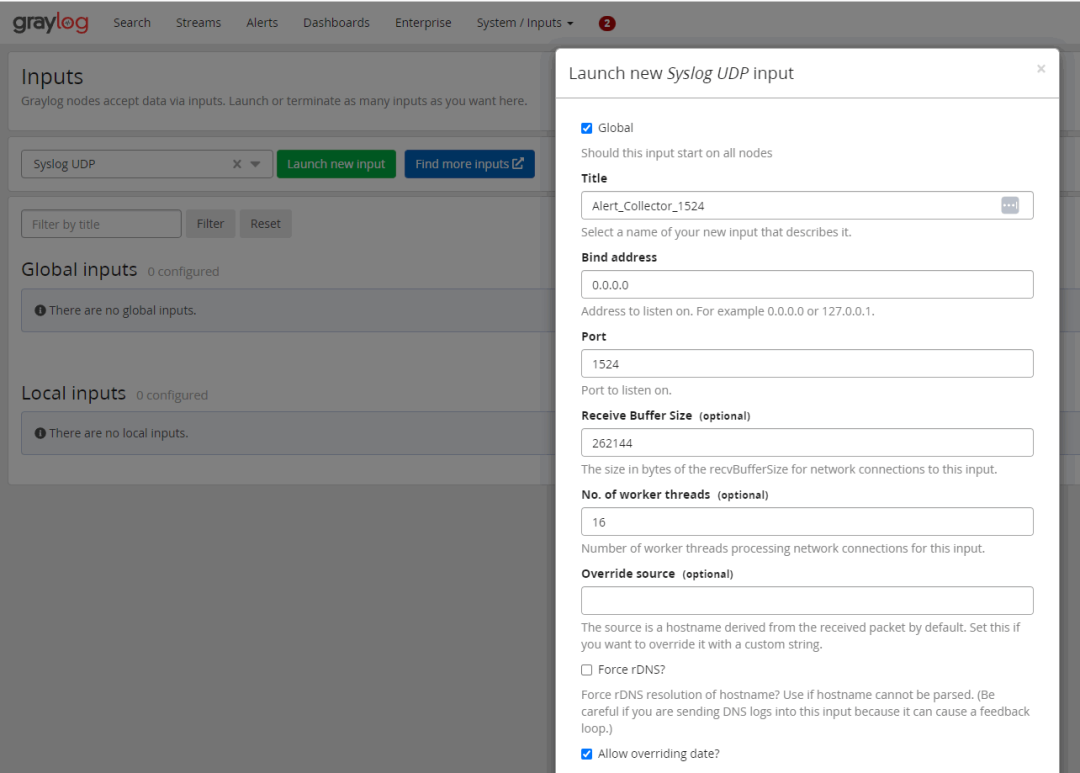 #Replace the Target and Port values with your GrayLogServer IP address and port.