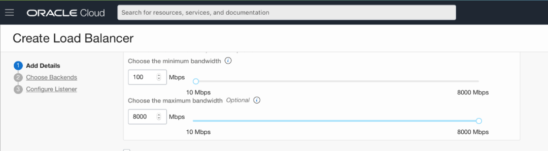 借助Oracle Cloud Infrastructure弹性负载均衡,客户将不再局限于固定带宽负载均衡服务实例类型或仅基于常规流量模式进行扩展。客户可以选择一个自定义的最小带宽和一个可选的最大带宽,两者都介于10 Mbps和8,000 Mbps之间。最小带宽始终可用,并为客户的工作负载提供即时就绪状态。如果需要控制成本,则可选的最大带宽设置可以限制带宽,即使在意外的峰值期间也是如此。根据传入的流量模式,可用带宽将随着流量的增加从最小的比例扩大。