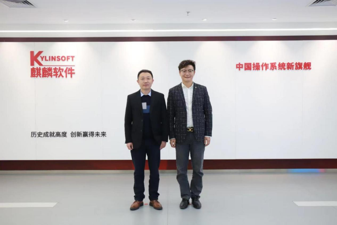 2022年10月19日,深信服科技股份有限公司(以下简称“深信服”)副总裁马程莅临麒麟软件,与麒麟软件高级副总裁宋介鹏进行会面交流,双方就进一步深化务实合作,携手发展进行了深入探讨。