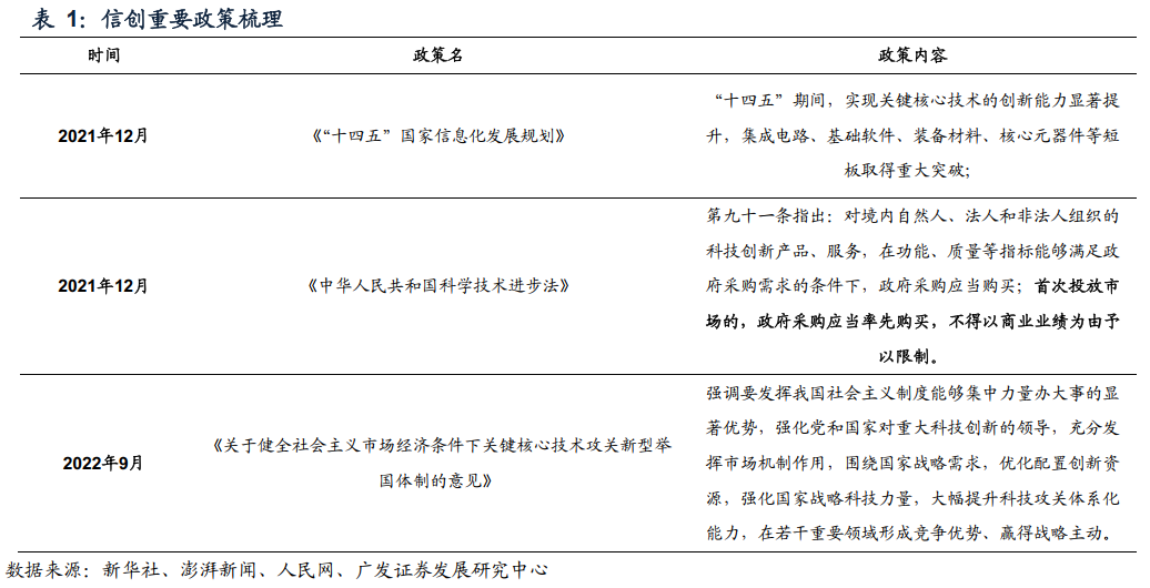 信创产业已完成初步生态搭建,政策支持力度不断强化