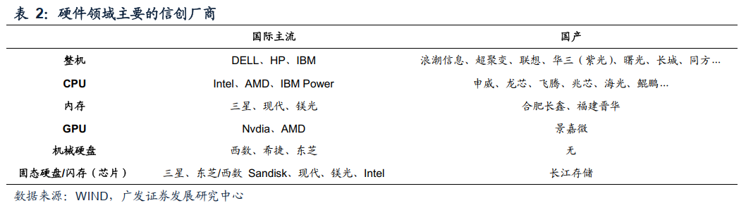 其中CPU及操作系统、数据库等高壁垒、高附加值的基础软硬件产品是完整信创生态中最核心环节。