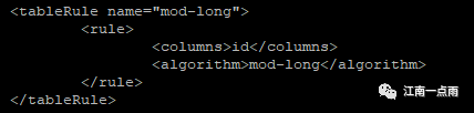 可以看到,取模的字段是 id ,取模的算法名称是 mod-long ,再看具体的算法: