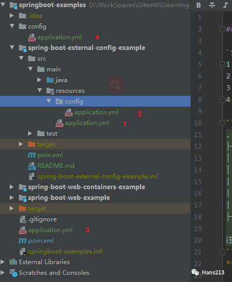 项目,3 和 4 的位置是指的是项目根目录下的位置当 .properties 和 .yml 文件同时存在时,.properties会失效,.yml会起作用。