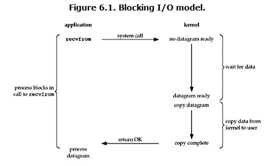 当在用户态调用read操作的时候,如果这时候kernel还没有准备好数据,那么用户态会一直阻塞等待,直到有数据返回。当kernel准备好数据之后,用户态继续等待kernel把数据从内核态拷贝到用户态之后才可以使用。这里会发生两种等待:一个是用户态等待kernel有数据可以读,另外一个是当有数据可读时用户态等待kernel把数据拷贝到用户态。