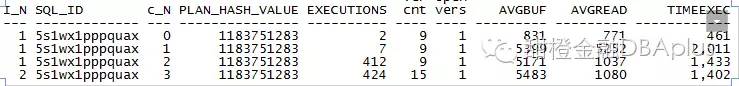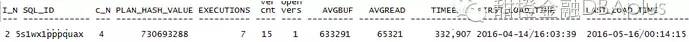 从上面的信息我们可以发现 此sql使用730693288的执行计划,平均单次执行需要333s,执行效率较差。