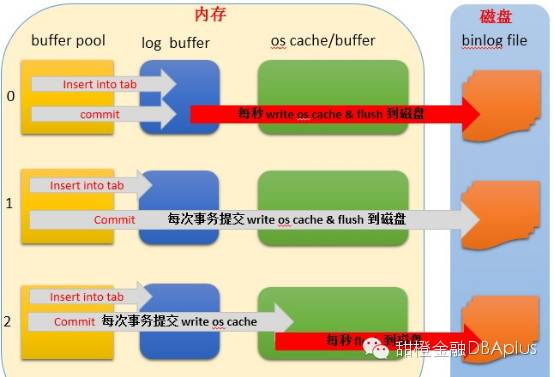 =2 :每次commit都 write os cache,然后根据innodb_flush_log_at_timeout参数(默认为1s) flush disk