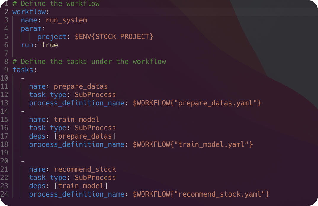 了解如何使用DolphinScheduler构建一个选股系统。 了解如何使用DolphinScheduler连接MLOps系统与其上下游任务。 了解DolphinScheduler SageMaker 组件的使用。 了解DolphinScheduler 通过配置文件管理工作流的实践。