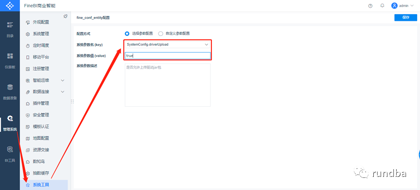 系统参数值 (value):将false更改为true,即允许上传驱动jar包