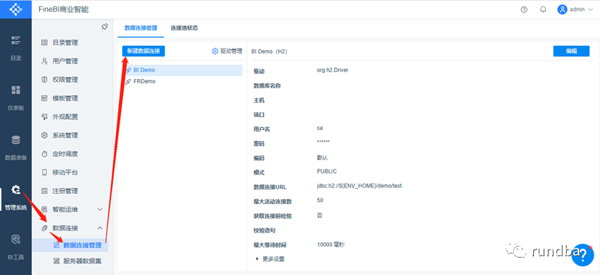 系统管理 > 数据连接 > 数据库连接管理 > 新建数据连接