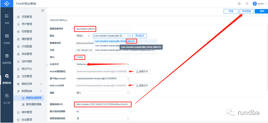 使用FineBI连接CDP impala时,需要ImpalaJDBC驱动。