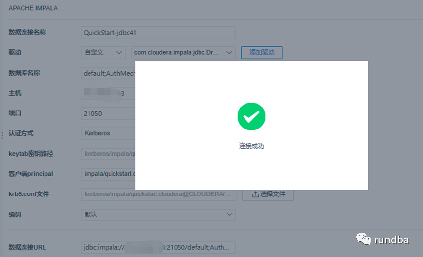 keytab密钥路径:点击选择文件,选择浏览器所在主机存放的keytab文件,如impala.keytab,此时客户端principal会自动带出;