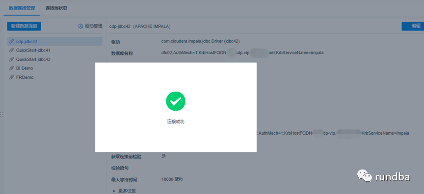 配置JVM 参数后再进入数据连接配置界面进行认证:主要用于按要求填写数据连接配置界面认证成功,创建连接依然抛错的情况,比如CDH的Impala 等数据库。