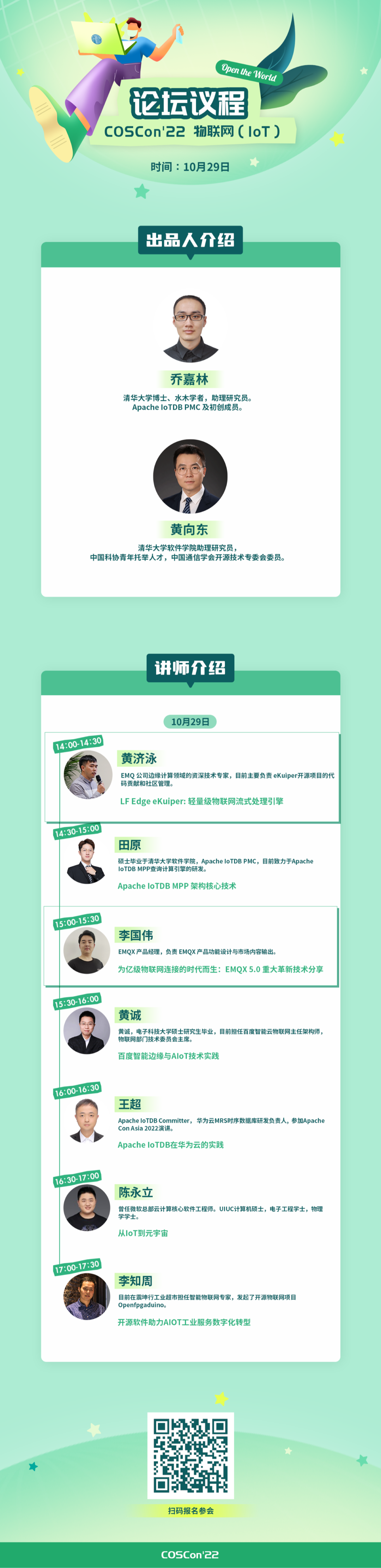 近年来,物联网呈现强劲发展势头,日渐兴起的物联网应用对嵌入式操作系统、边缘数据采集、边云数据管理、数据分析提出了许多挑战,其中也诞生了众多优秀的开源软件系统,物联网论坛将围绕物联网相关开源项目的最新进展、核心技术以及用户经验分享等话题展开讨论,致力于打造成物联网应用用户和开发者们的技术盛宴。