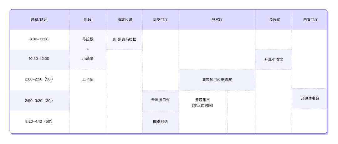 此外还有黑客马拉松、开源脱口秀、开源小酒馆等多个颇具特色的环节,等大家来体验。
