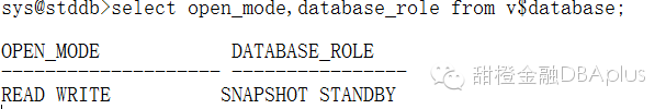 从上面的输出可以看出,数据库处于snapshot standby状态,并且此时数据库是read write模式打开的,因此可以对外提供读写访问。