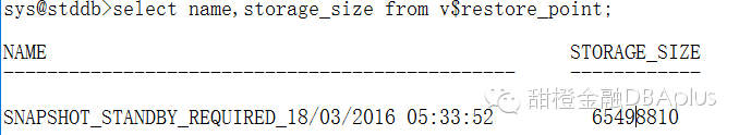 其实snapshot standby的实现是基于Oracle的闪回数据原理的,这也是为什么需要配置闪回恢复区的原因。一旦数据库切换到snapshot standby模式,那么数据库将自动创建一个闪回还原点,如下所示。