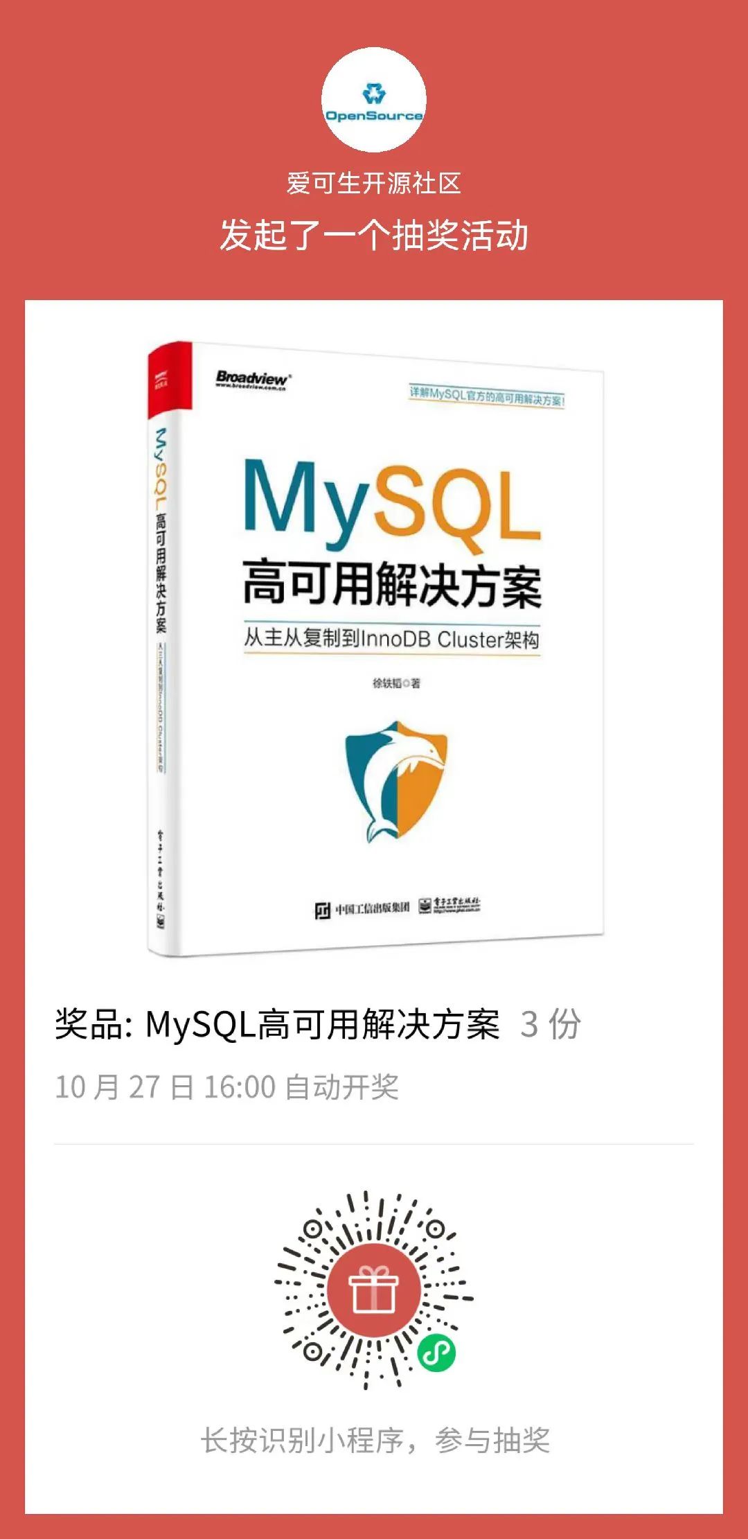 雍正大人下旨:爱可生开源社区定期以抽奖或者其他活动方式送出精心挑选的图书,以此来回馈一直支持我们的小伙伴们;