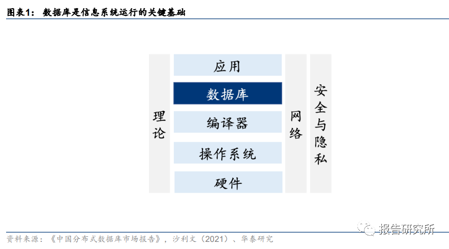 数据库是信息系统运行的关键基础。从定义来看,数据库是按照一定的数据结构组织、存 储和管理数据的仓库,在计算机中一般由一个或者一组文件构成;从本质来看,计算机解 决的是数据计算和数据处理问题,数据库则是计算机应用系统中的专门管理数据资源的系 统;从架构上看,数据库作为计算机三大基础软件(操作系统、数据库、中间件)之一, 向下可充分发挥硬件算力,向上支撑上层的应用需求,是信息系统高效运行的关键基础。