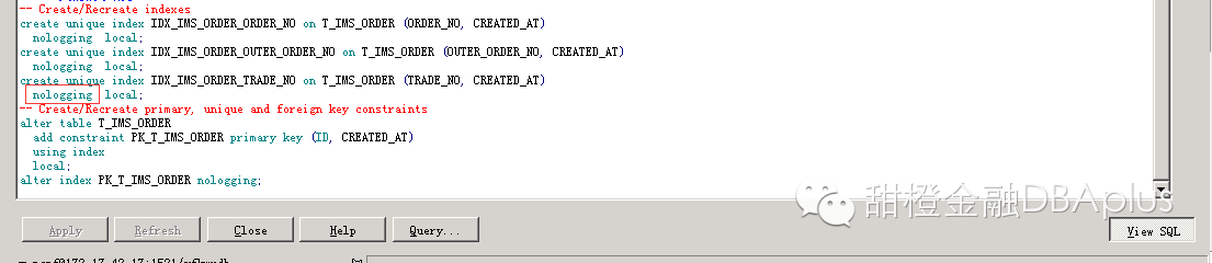 view sql那索引不显示表空间,并且多了nologging,但实际索引是logging的