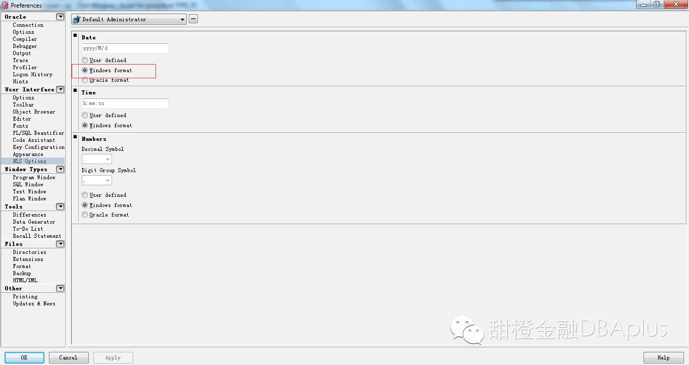 可以看到默认plsql使用了windows系统的设定。也就是这个