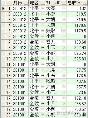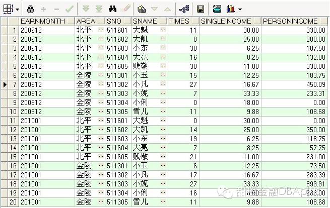 select earnmonth 月份,area 地区,sname 打工者, personincome 收入,