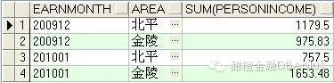 group by 后面接 cube 是对earnmonth汇总统计基础上对area再统计。