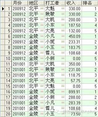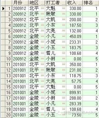 rank() over (partition by earnmonth,area order by personincome desc) 排名
